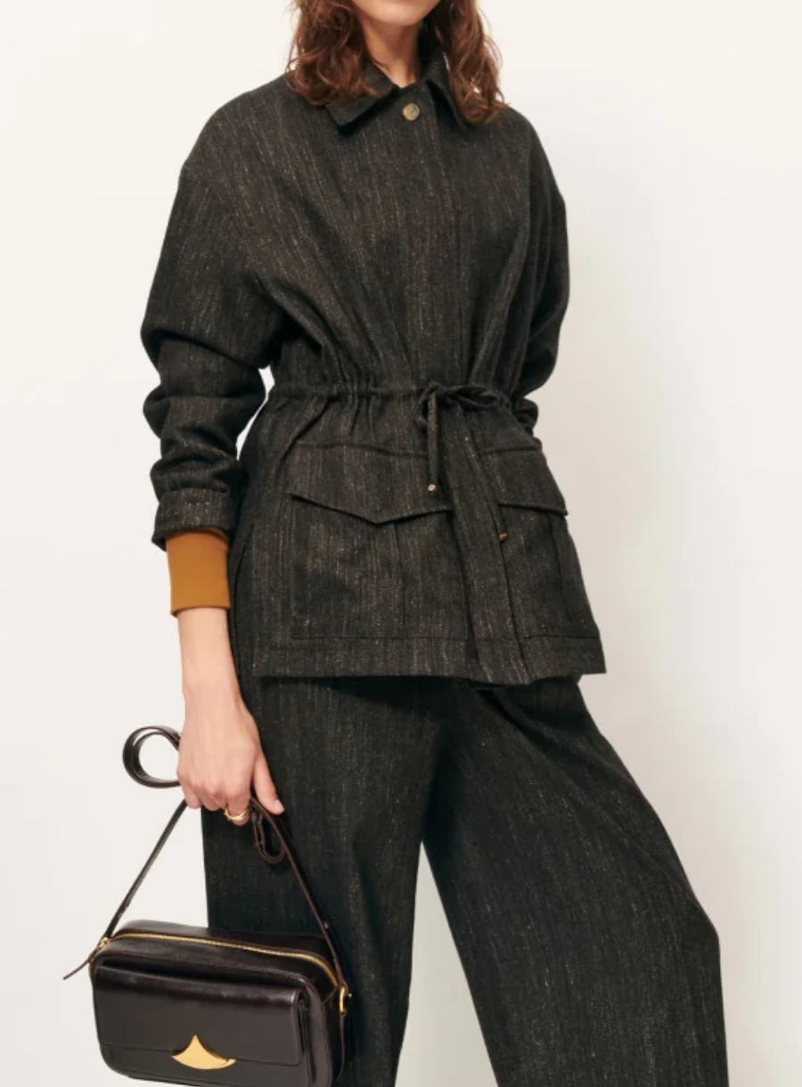 Taglio morbido, vita regolabile e tessuto grintoso: Gabriel è la giacca che trasforma ogni look in “ok, lei sa il fatto suo”. Perfetta per Roma, perfetta per te.
